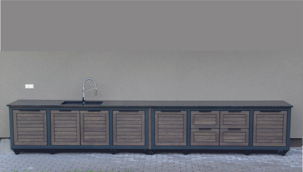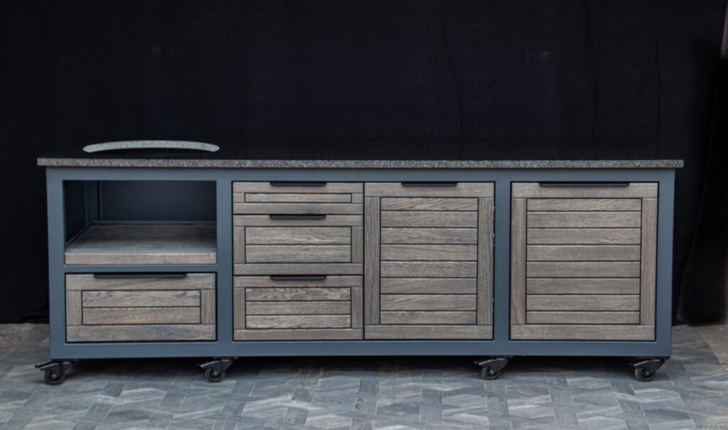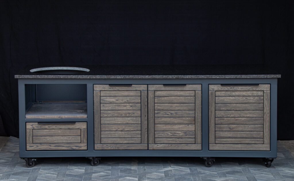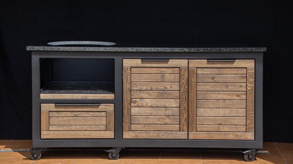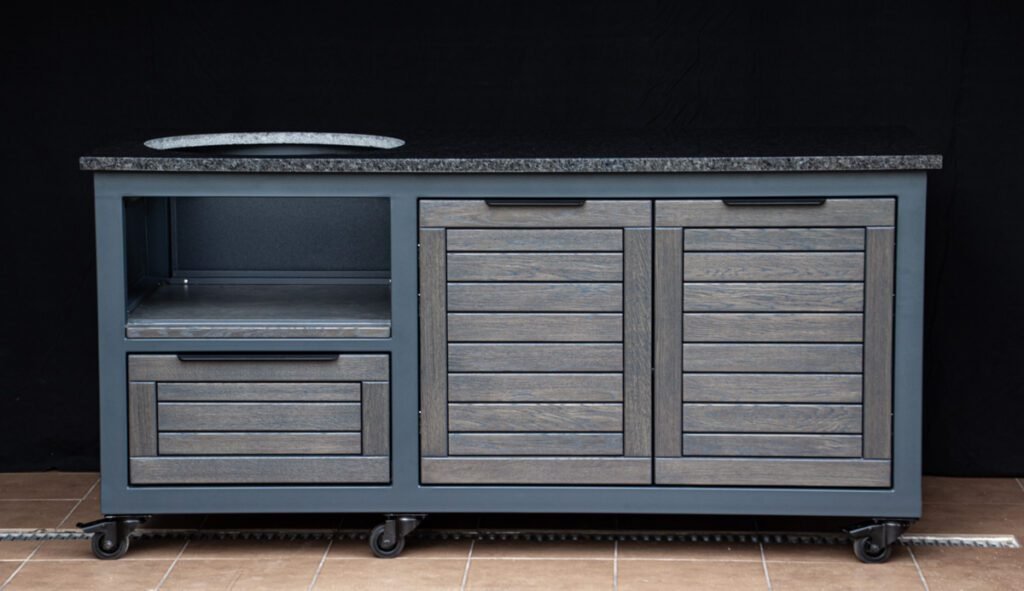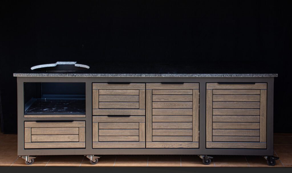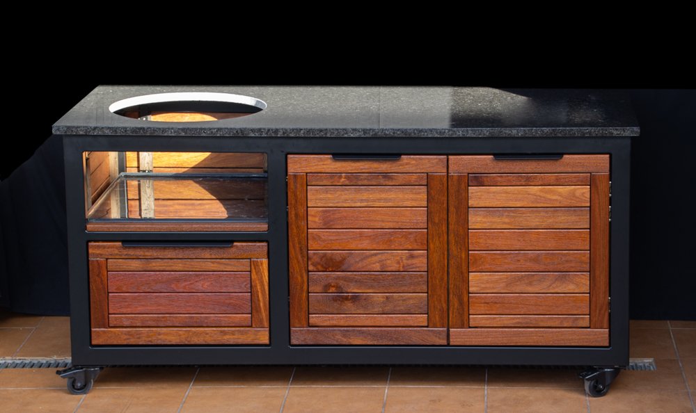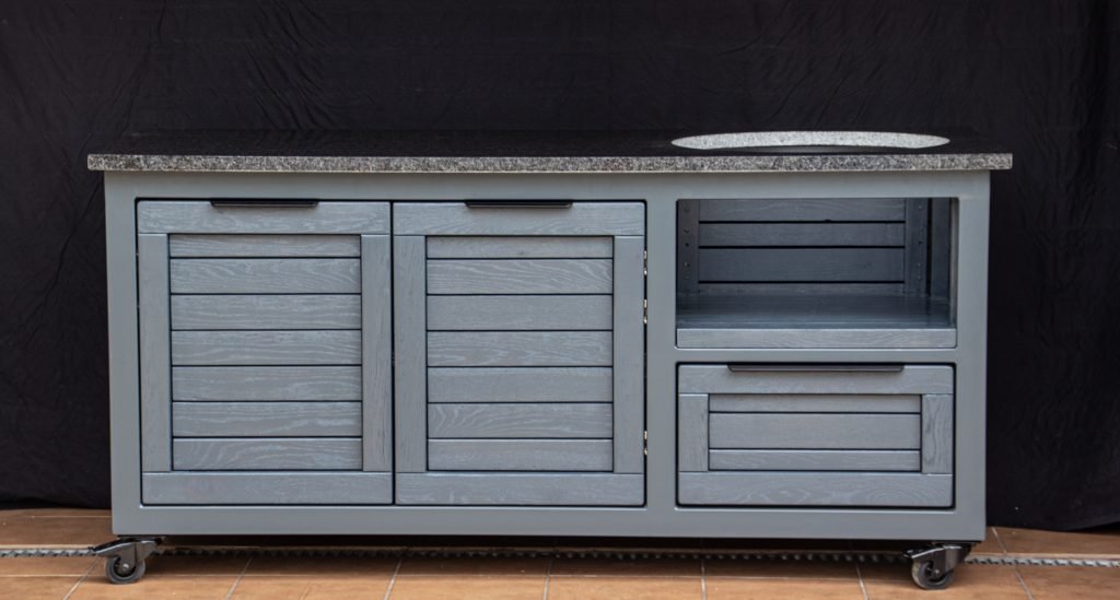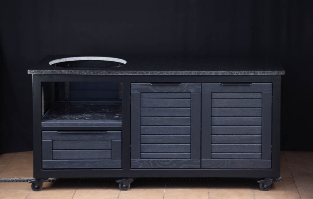 Outdoor kitchens, grill zones for kamado and gas grills