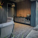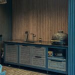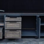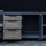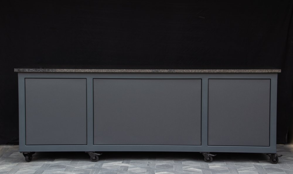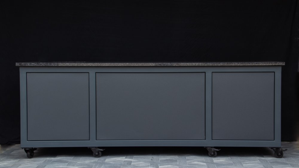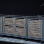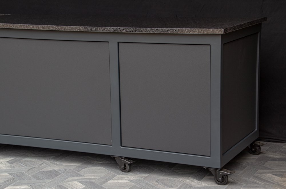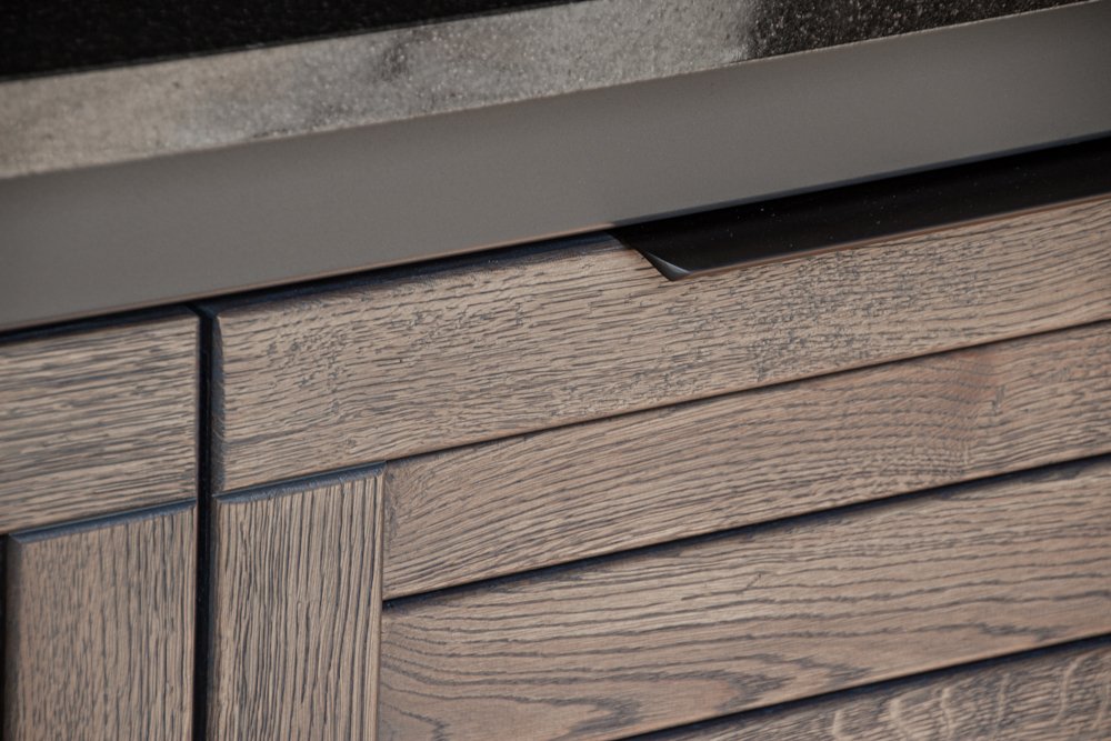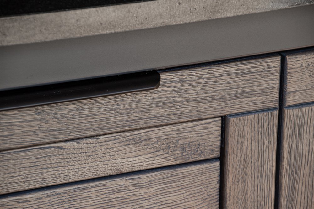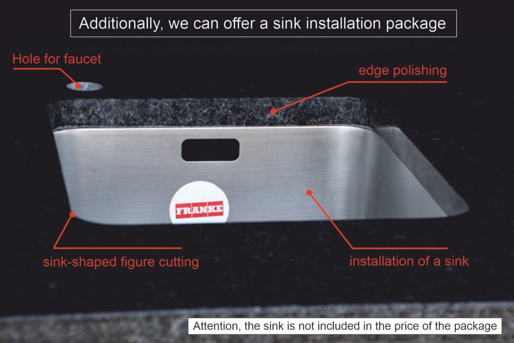 Countertop (optional) – HPL Compact 12mm (with black filler) or dark, natural granite.
