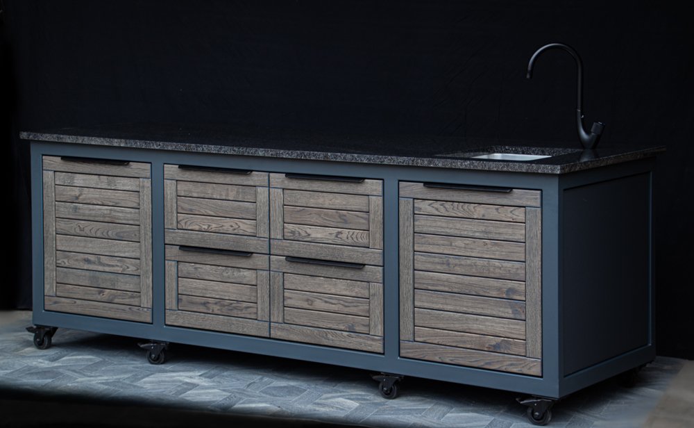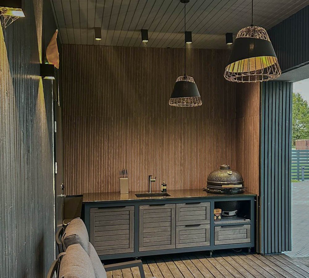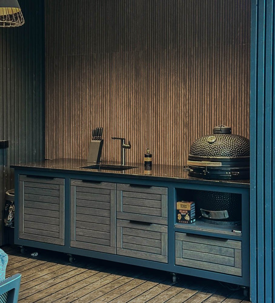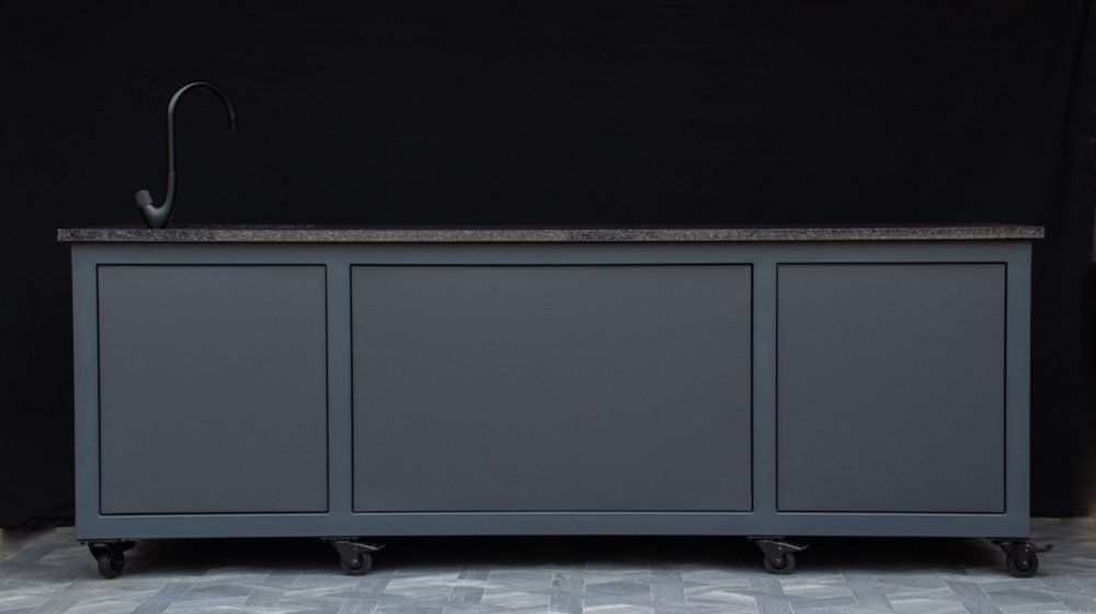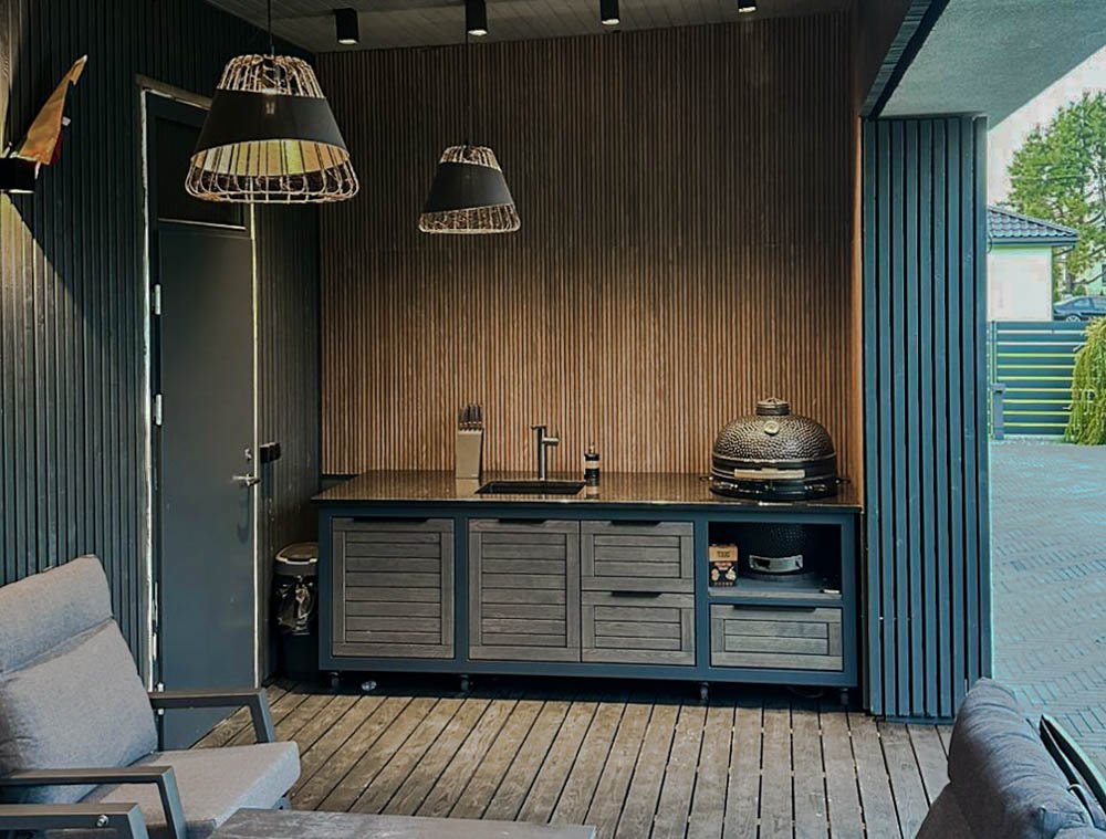 we can also offer a Franke stainless steel sink installation package, which is visually explained in one of the product photos. If you have not brought water and sewage pipes to the grilling area, you can connect the water supply from the garden hose, and for wastewater runoff, we can install a compact 20 liter wastewater collection tank under the sink, which you can remove and empty into the city sewage system.